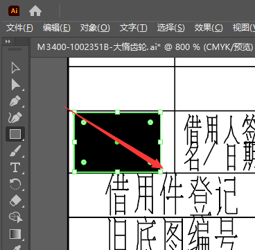 然后,拖动视角至需要提取的文字上,使用左侧工具栏中“矩形工具”(快捷键M),在文字上方覆盖画一个框。如图所示: