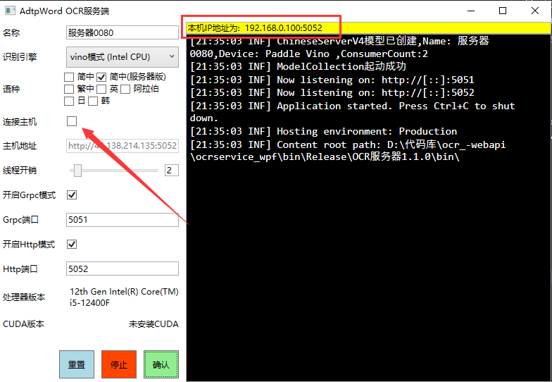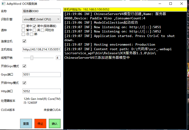下载.Net 6.0桌面运行时和Asp.Net 6.0服务器运行时并安装,然后打开下载的OCR服务器中的ocrservice_wpf.exe。