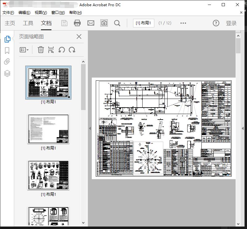 用“Adobe Acrobat”打开“脱气仓详图.pdf”(此处以Acrobat DC版本为例),在左侧“页面缩略图”中右键,选中“提取页面”。