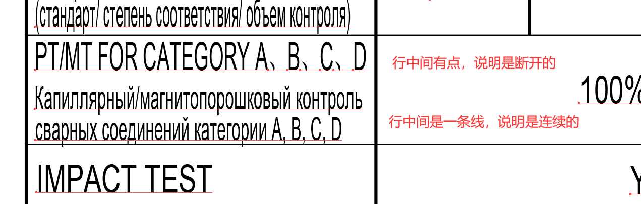 按Ctrl+A全选所有文字,观察每个文字,如果文字没有断开,在文字下方会显示一条线,如果文字存在断开,则会显示两条线段。如图所示:
