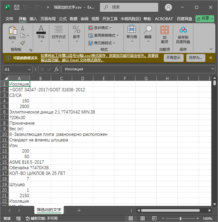 同时,在刚才选定的路径下,会生成“筛选出的文字.csv”文件,此文件如图: